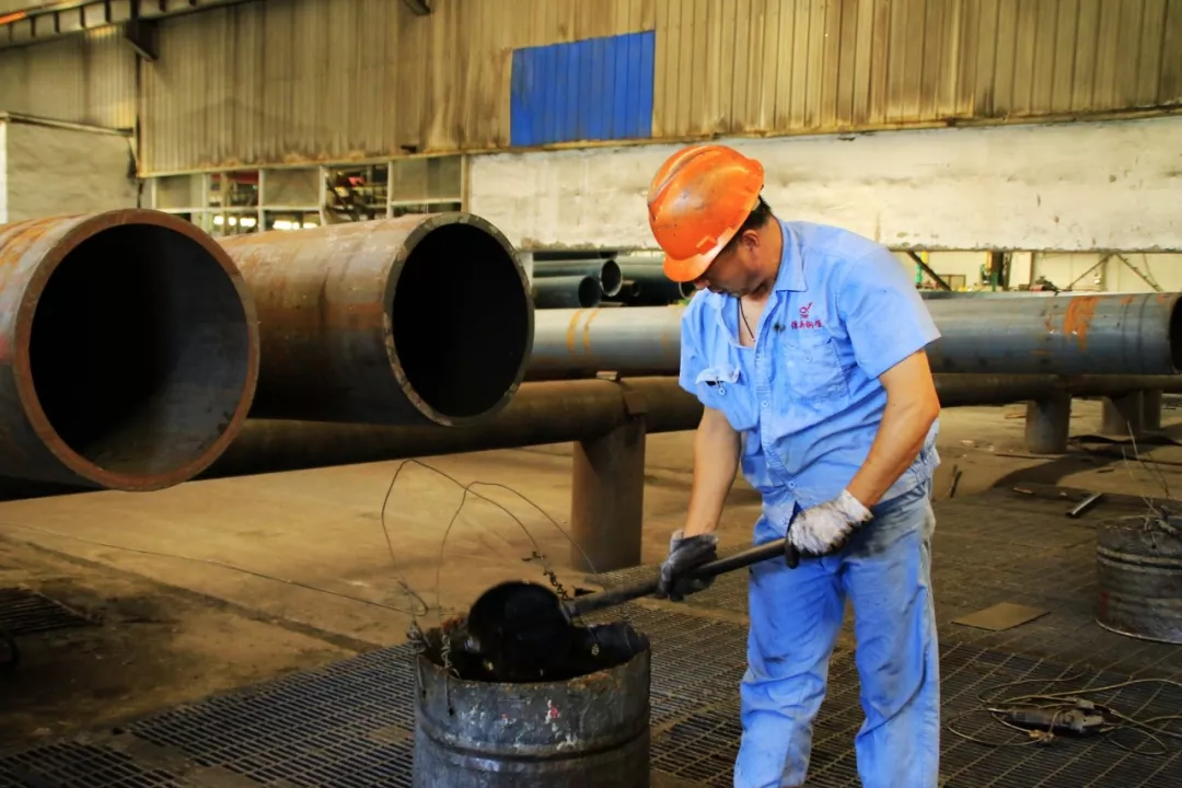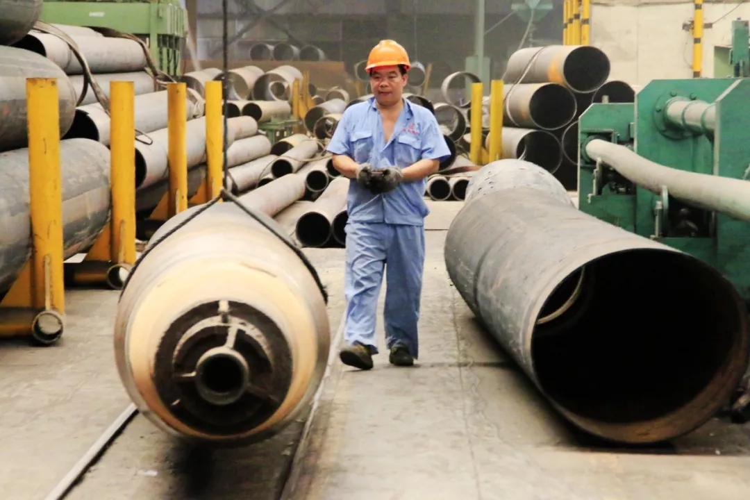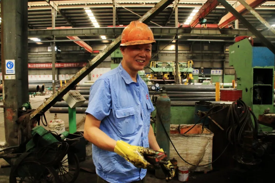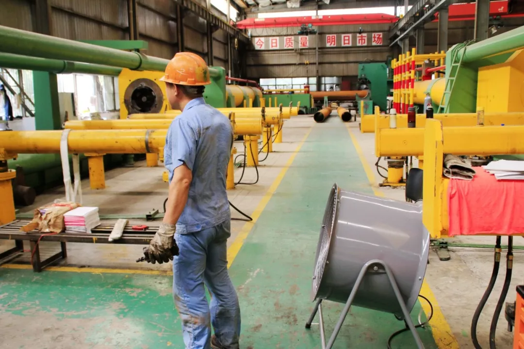 看著滾底爐中的滿團火紅,便知熱處理和熱擴工序是車間的“熱點”,幸虧現(xiàn)在設備自動化程度高,有時電腦操作控制還可以在空調房待會,劉師傅說道:這兩個區(qū)域加上矯直作業(yè)區(qū),是車間最熱的地方,以前曾經(jīng)測過超過五十度。
