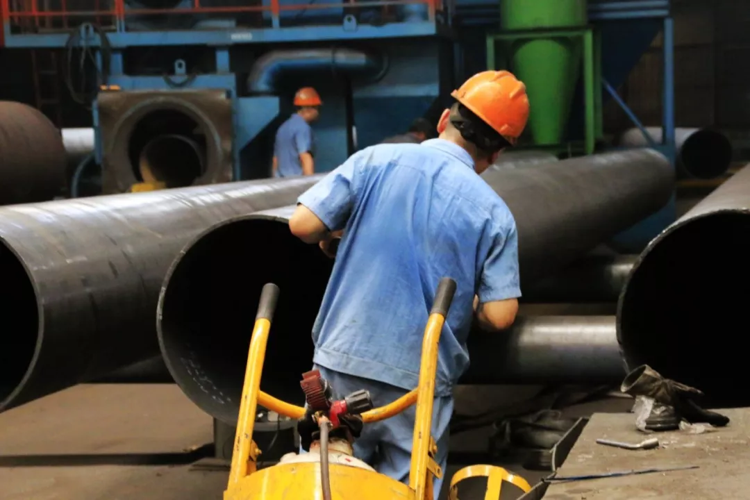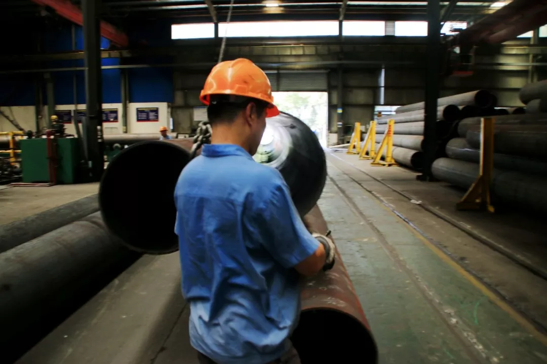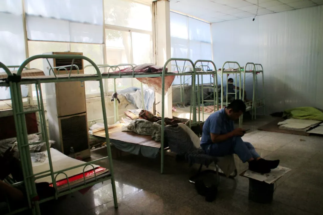 和小編不同,很少看見滿頭大汗的工人,或許他們流的汗太多太多,體內缺少了水分。只有從他們相同的背影去辨別,原本淺藍的工作服,被汗水濕透變成了深藍色,從上到下緊緊貼附在身上。